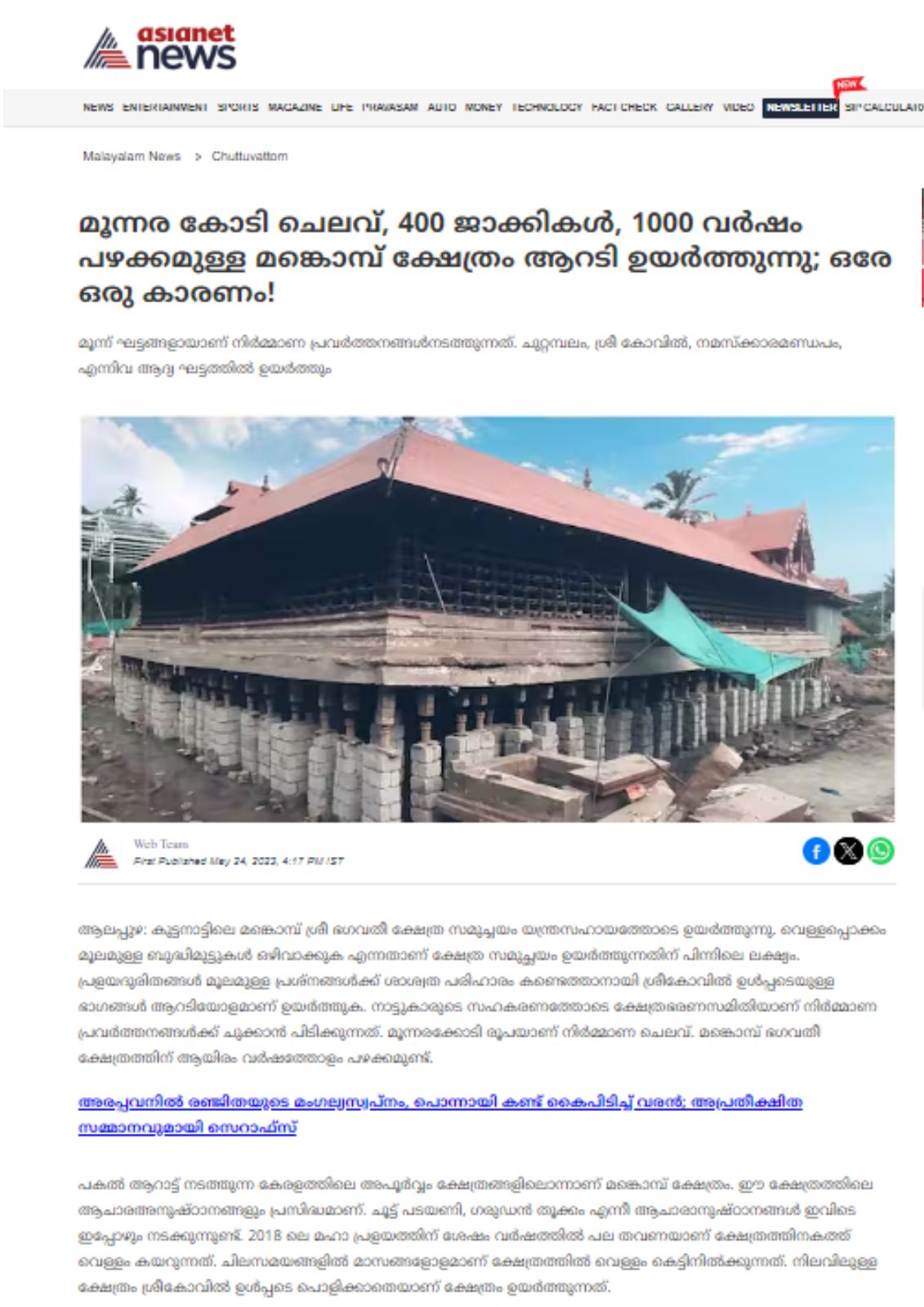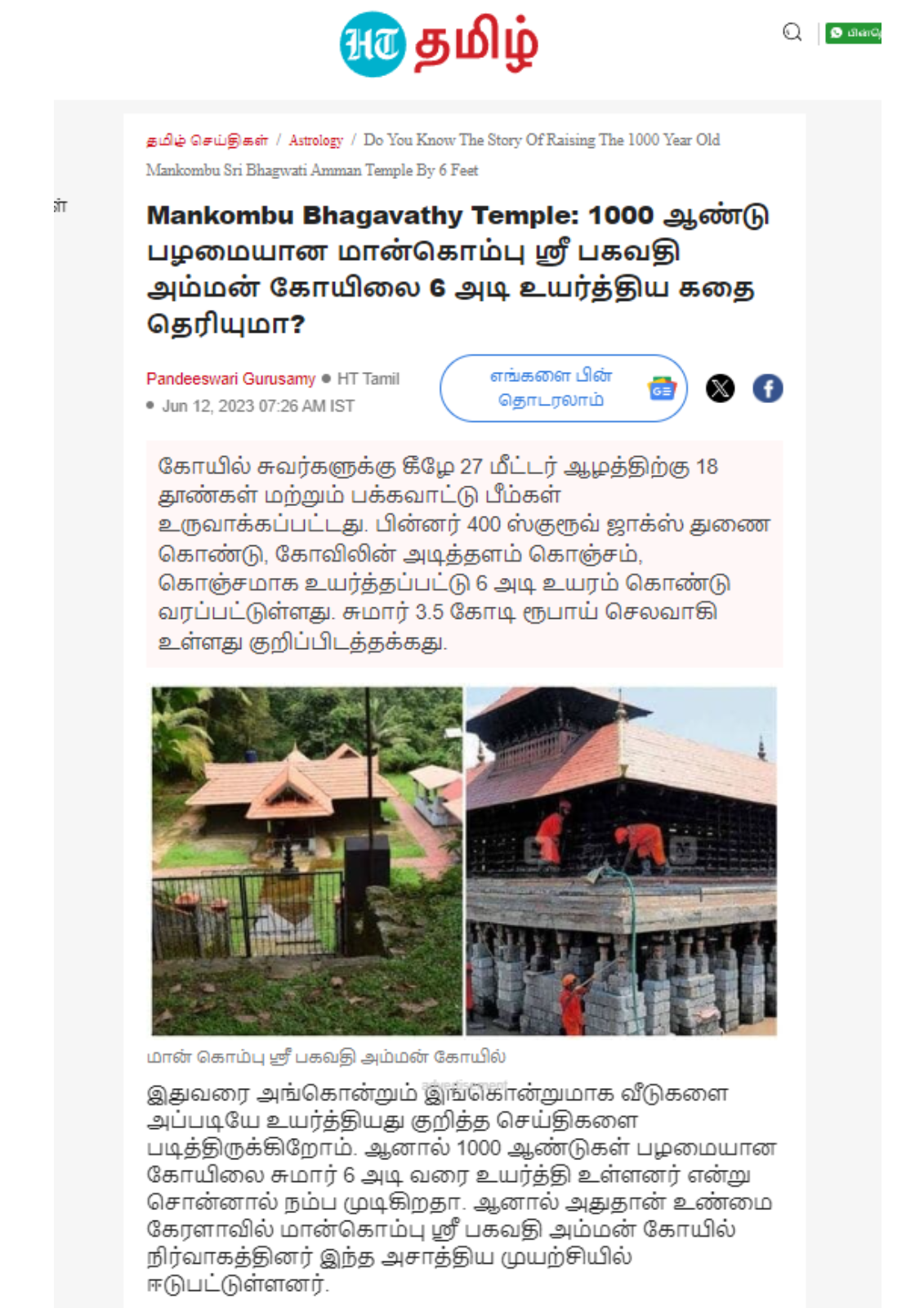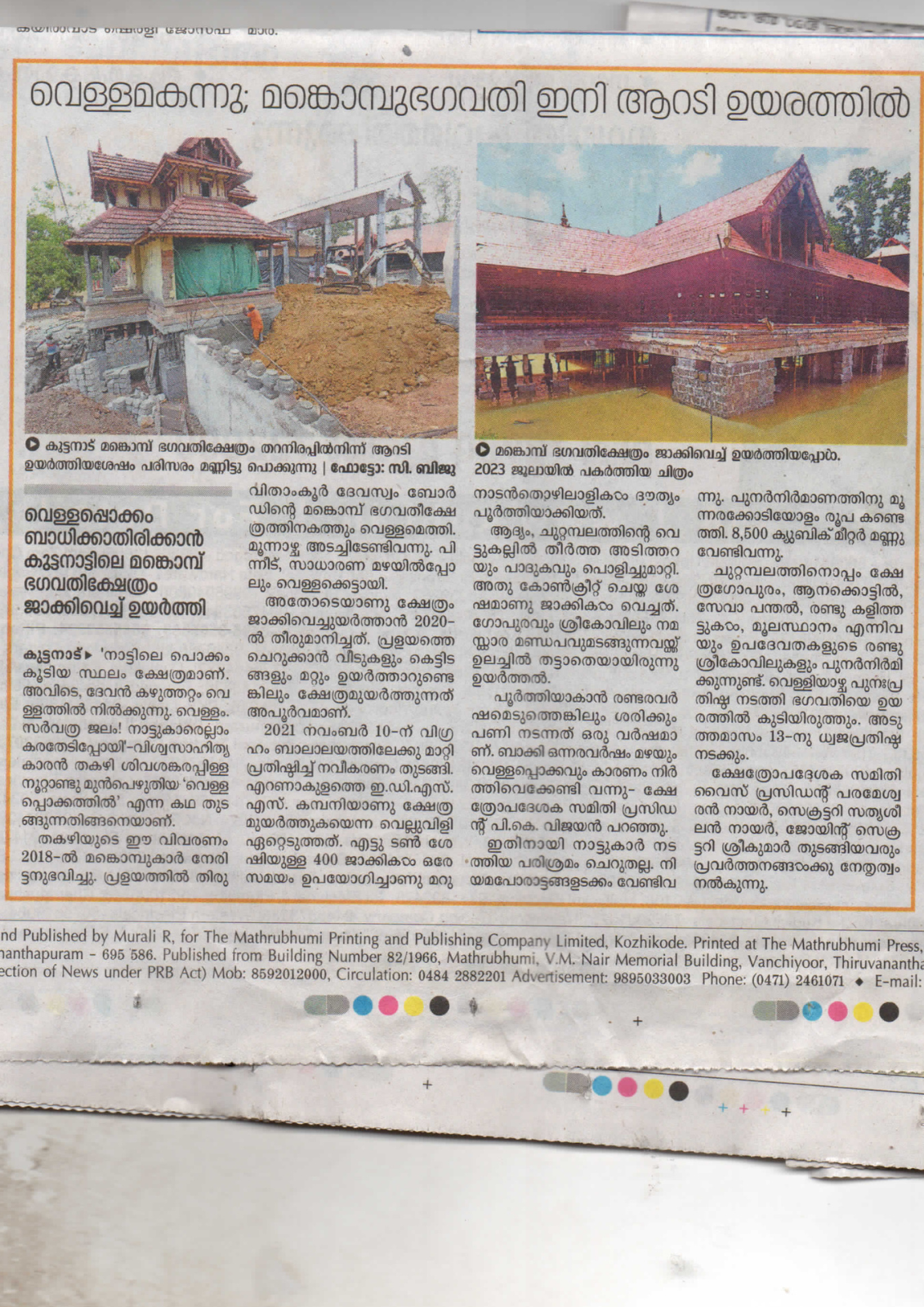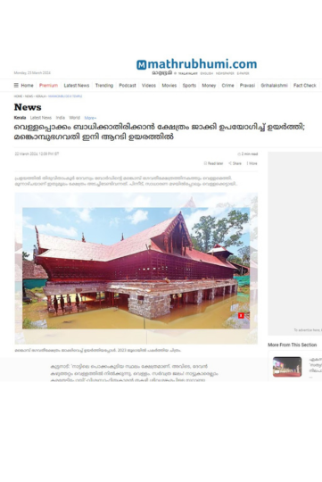 News Reports on Mankombu Devi Temple