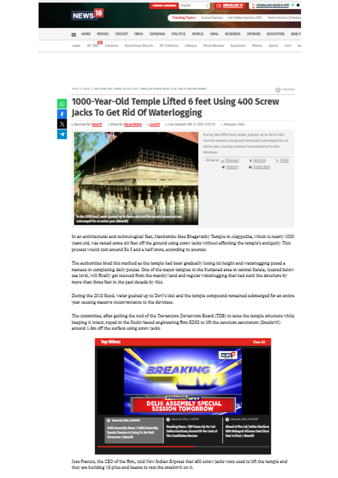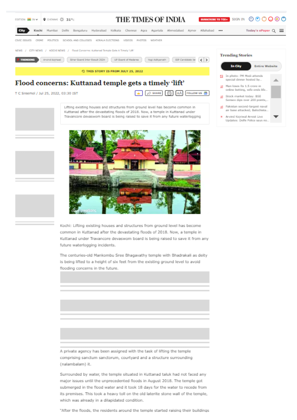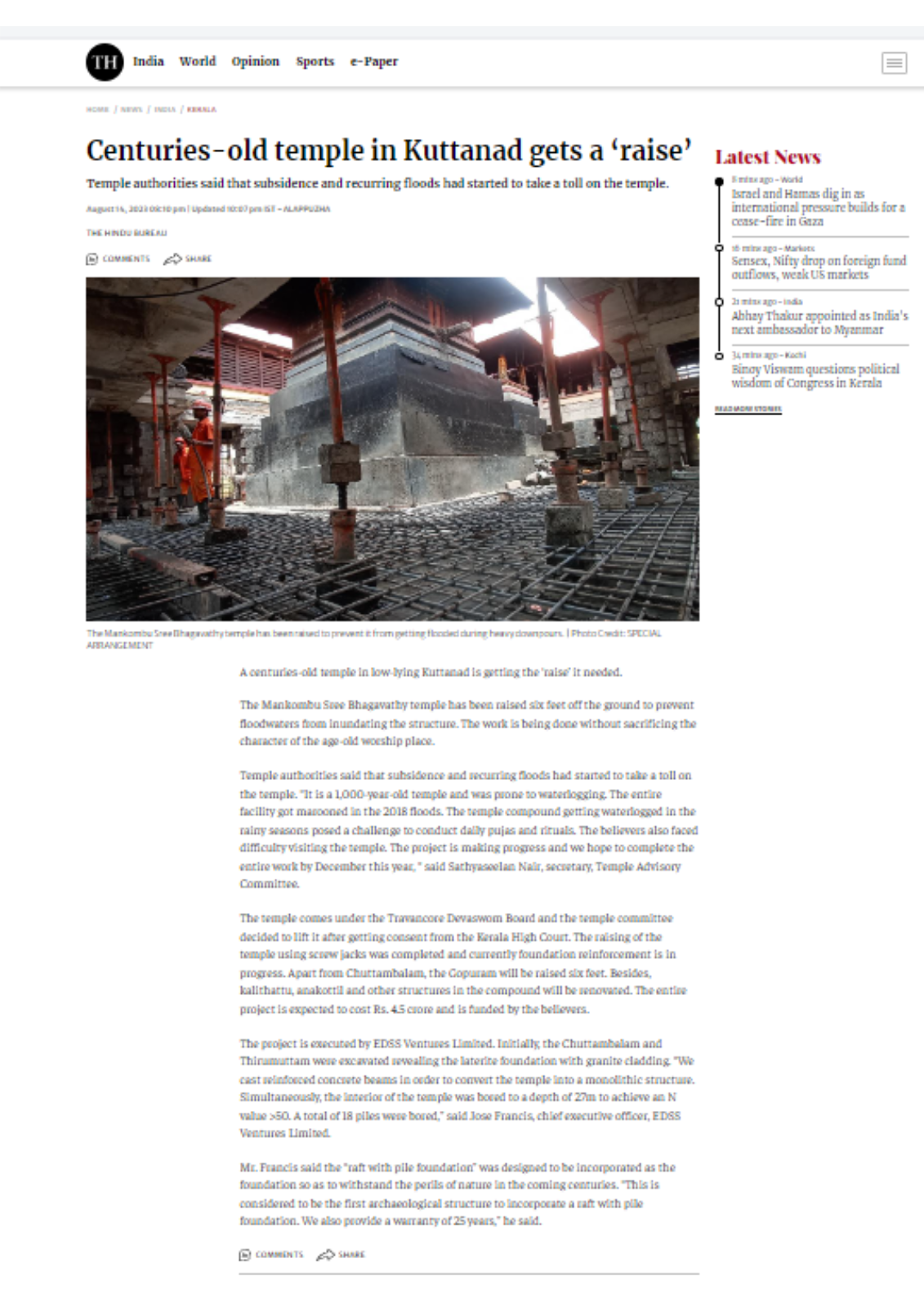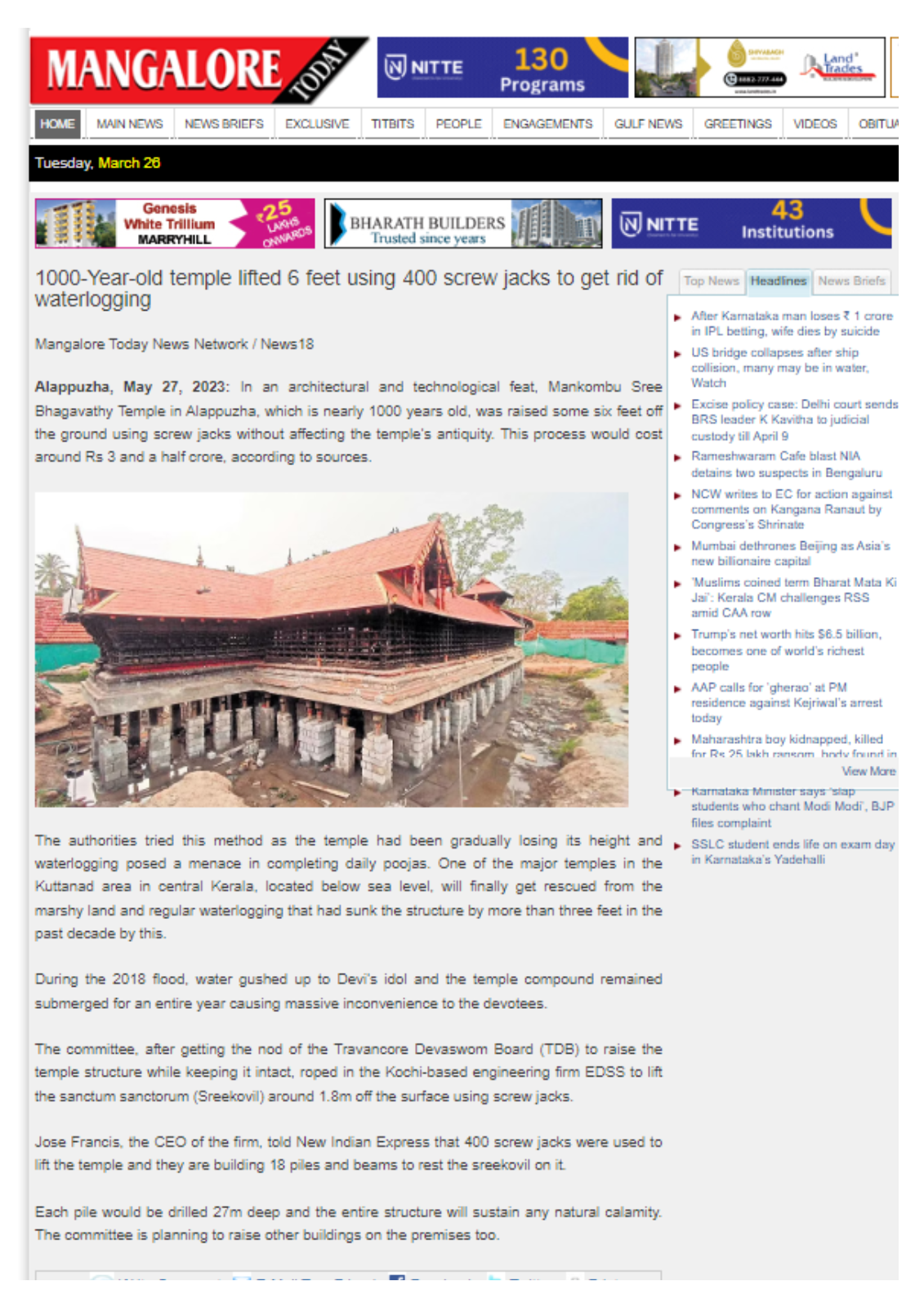 News Reports on Mankombu Devi Temple
